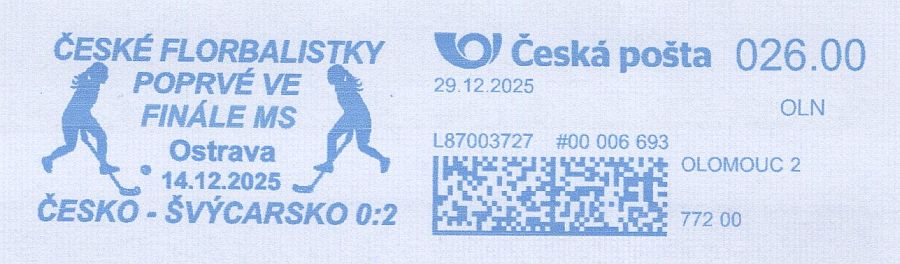 Vydáno při příležitosti: České florbalistky poprvé ve finále MS – Ostrava 14.12.2025 – Česko – Švýcarsko 0:2